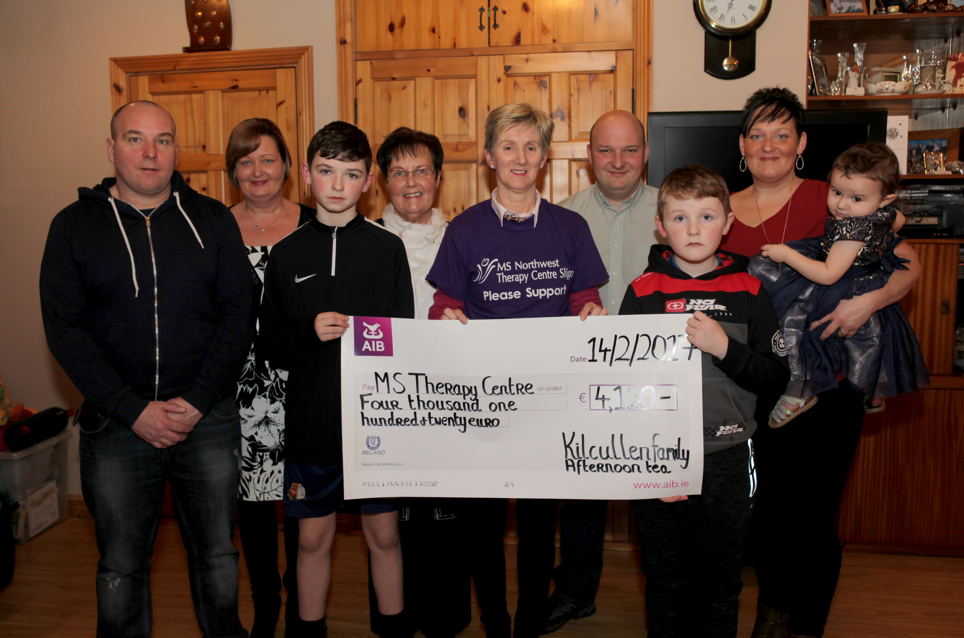 Posted: 10 Feb 2017 Kilcullen Family Afternoon Tea and Mass On the 14 of Jan 2017 in order to mark Rory Kilcullen’s 40th and Padraic Kilcullen’s 75th birthdays, the Kilcullen family decided to have a remembrance mass in their home. This developed into an opportunity to raise awareness and funds for two charities close to the family’s hearts by holding Afternoon Tea following the mass. As one of the instigators of the MS North West Therapy Centre which opened in 1993, Padraic lost his battle with MS and passed away in 1995. In 2009, the family suffered another bereavement when Rory lost his life to suicide. With these losses in mind, the family embraced the chance to raise awareness of the services available in The MS north West Therapy Centre and Pieta House, which are free of charge, with the hope of helping to prevent another family from suffering similar losses. Fr Declan Boyce celebrated a lovely mass and family, friends and neighbours stayed and chatted over tea and coffee. The MS North West Therapy Centre exists to enrich the lives of people with MS and other neurological conditions by providing essential services and support to clients and their families. Their telephone number is 071 9144748. Padraic’s wife Breege told us of the importance of the service provided by the MS North West Therapy Centre and how her husband Padraic had known that he may not be around to avail of the services but that it would be of benefit to others. She stated that it is ironic now that both her brother and sister are now attending the centre and how the centre has been of great benefit to them both. “Deirdre Murray from the MS North West Therapy Centre had asked me to do a coffee morning and we thought we could use this opportunity to do that. As it was such a social event I would encourage anyone to hold a coffee morning for the MS centre and they will oblige with a starter kit for you” said Breege. Pieta House provides a free therapeutic approach to people who are in suicidal distress and those who engage in self-harm. Phone number of Pieta House, Tuam is 093 25586 and the 24/7 Suicide Helpline 1800 247 247. Rory’s brother Gary spoke after the mass about the impact of the loss of a loved one and a friend which never leaves you. He highlighted the importance of asking for help when you need it. He encouraged everyone at the mass to look out for signs of depression in their friends and families and to be aware of the services available in Pieta House. With the help of family, friends, neighbours, local businesses and the generosity of the community a total of €8,220 was raised. This means that these deserving charities received the sum of €4,110 each. People called with donations throughout the day and for the weeks following the event. The family are very happy with the amount of money raised and are very aware that this could not happen without the tremendous support of those around them. The success of the event is a testament to the people of Sligo and an optimistic start to 2017, the year in which Sligo is the European Capital of Volunteering. The Kilcullen family stated “For us this was a great way to start 2017, given that It was a really nice opportunity to meet up with neighbours, family and friends and the feedback from everyone was very positive. We would recommend this as a very enjoyable fundraiser and social event for anyone that is thinking of a way to raise awareness and funds. We felt the presence of Padraic and Rory on the day and we were very touched by the amount of people that helped us to celebrate their special birthdays. We are sure that they would be very proud and honoured.”